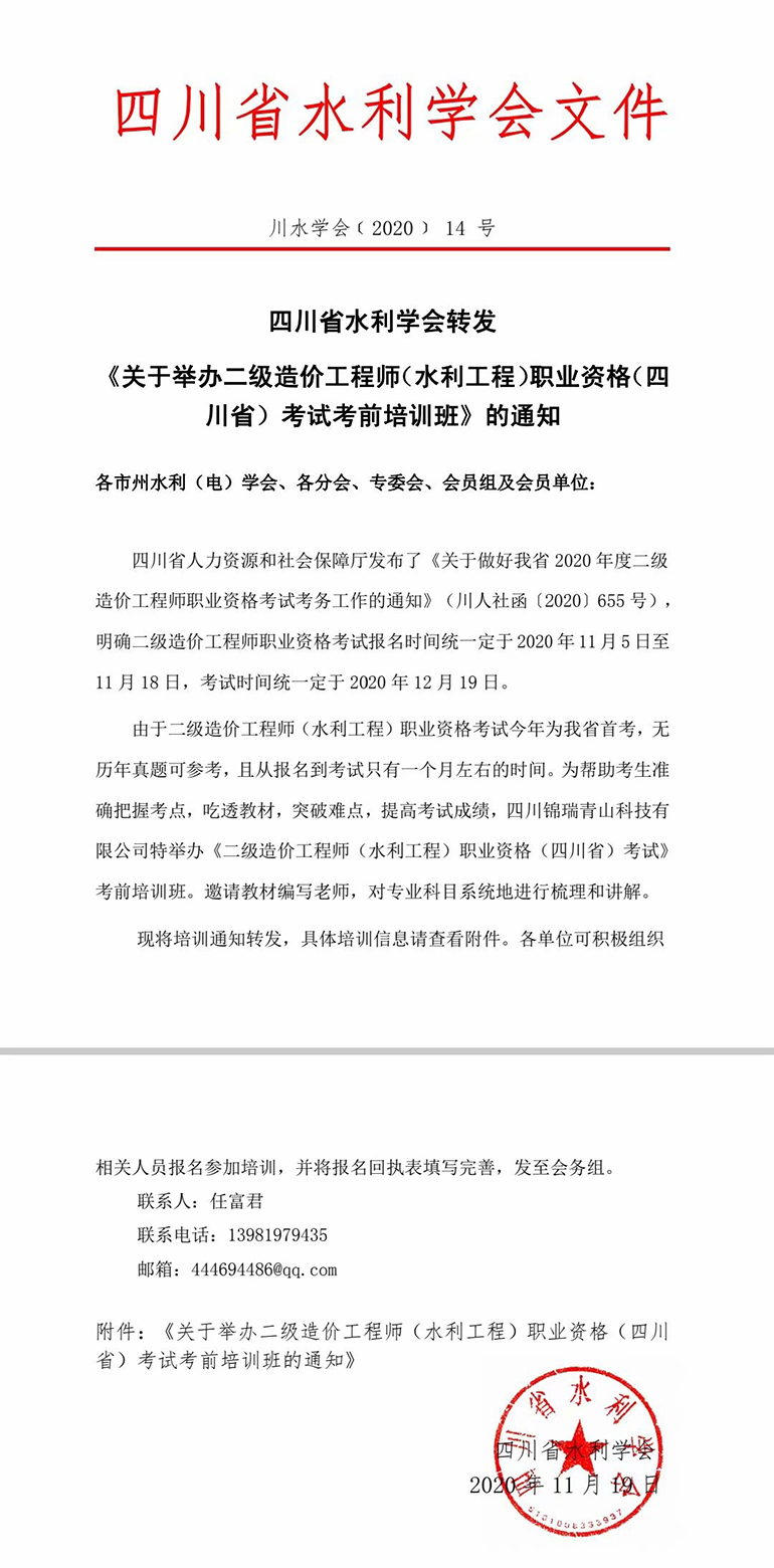 关于举办二级造价工程师(水利工程)职业资格(四川省)考试考前培训班的通知